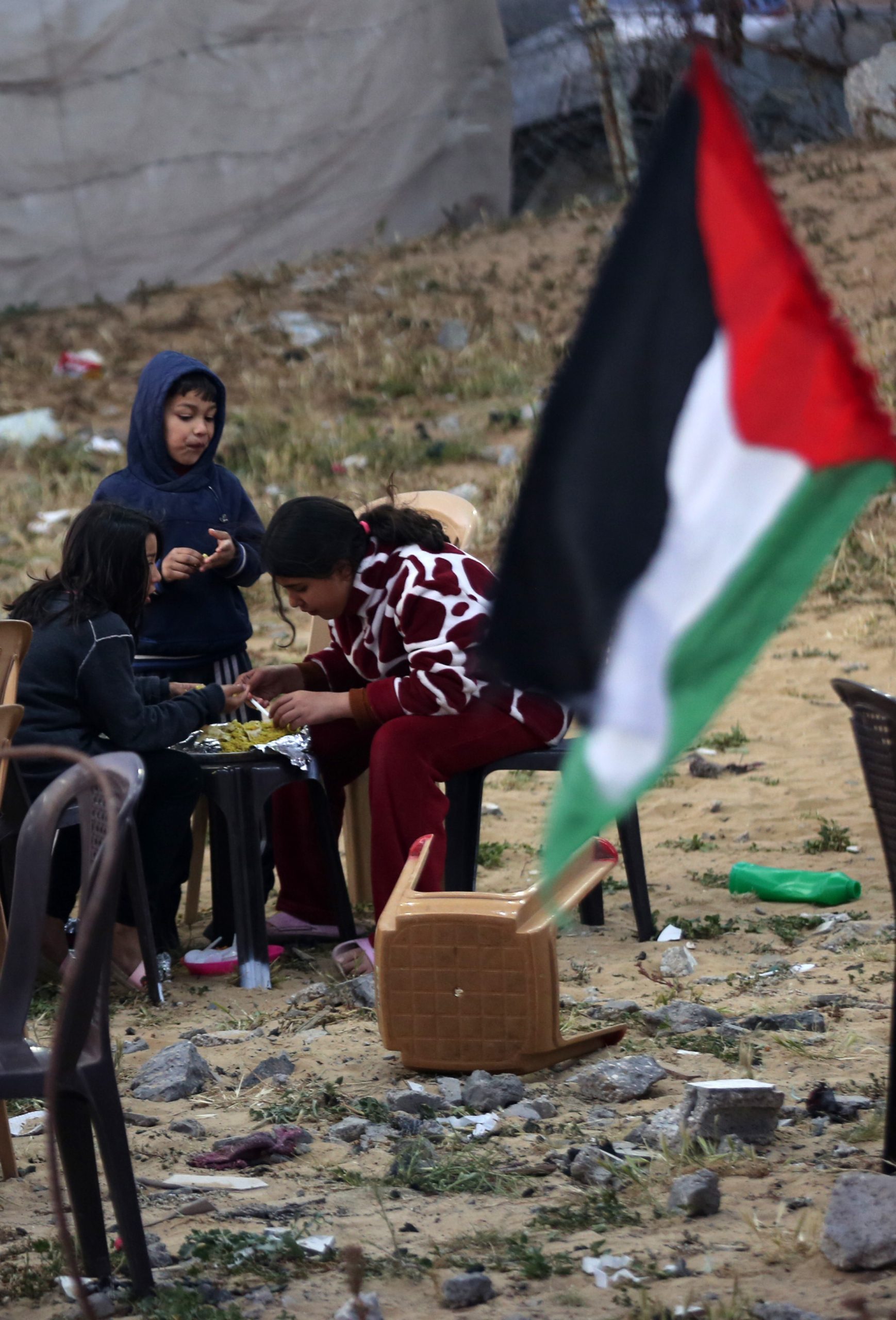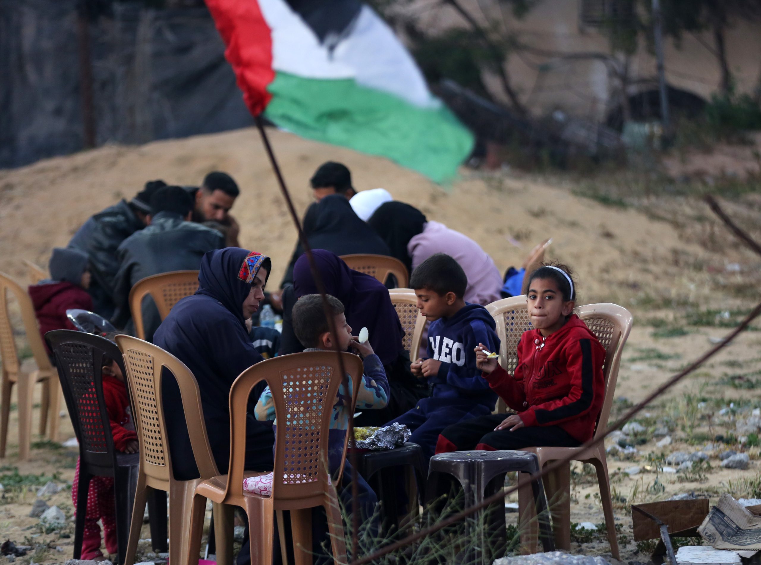 ولتناول الإفطار الرمضاني الأول لهذا العام، تجمعت عشرات آلاف الأسر في خيام النزوح التي نُصبت بشكل بدائي في مناطق مختلفة في قطاع غزة، فيما كان أكبر تجمع لهم في مدينة رفح جنوبي القطاع.