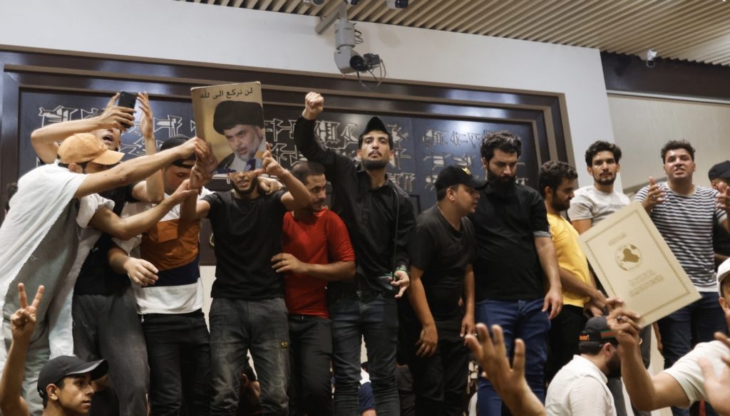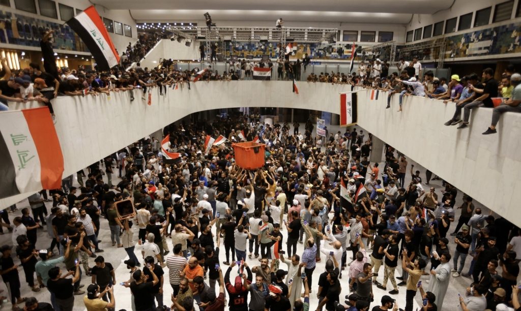 قرّر رئيس مجلس النواب العراقي محمد الحلبوسي، في بيان رسمي له السبت، 30 يوليو/تموز 2022، تعليق عقد جلسات البرلمان حتى إشعار آخر، ودعا القائد العام للقوات المسلحة إلى “اتخاذ التدابير اللازمة لحماية المؤسسات، وحماية المتظاهرين”.