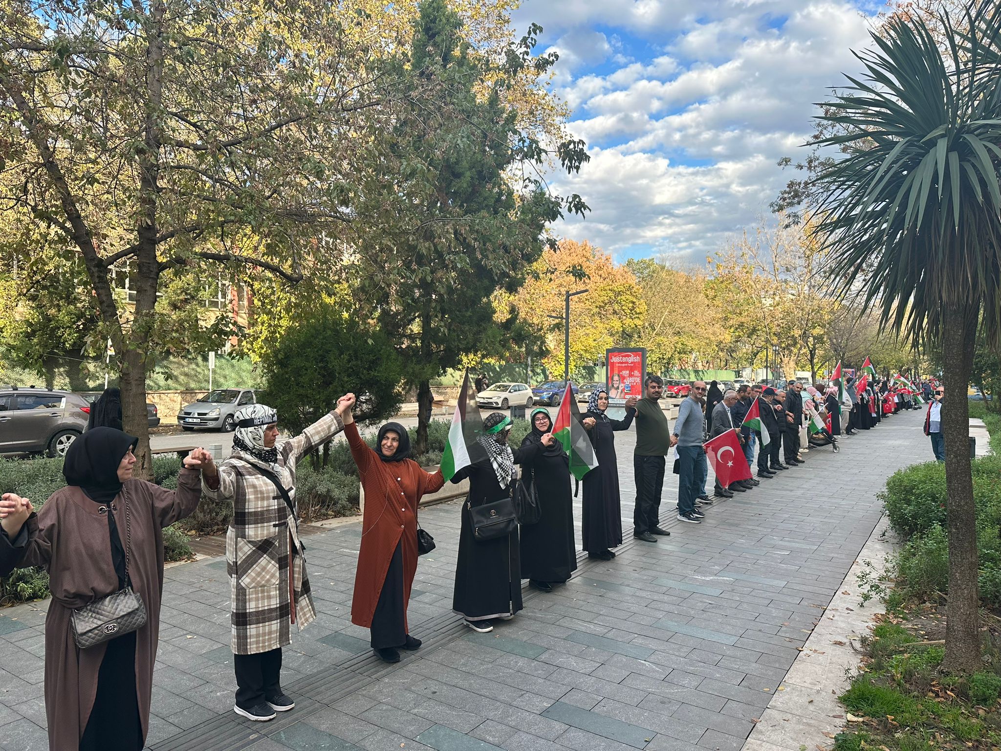 أتراك ينظمون سلسلة بشرية بطول 7 كم دعماً لأهالي قطاع غزة.. نددوا فيها بـ”المجازر الإسرائيلية” (صور)