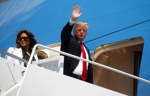 U.S. President Donald Trump boards Air Force One to depart for travel to Ohio from Joint Base Andrews in Maryland, U.S.