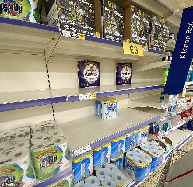 صحف بريطانية، من بينها Daily Mail وIndependent، نشرت الإثنين 21 سبتمبر/أيلول 2020، صوراً أظهرت متاجر بريطانية وقد أصبحت شبه فارغة، بعدما تدفق الناس إليها لشراء السلع الرئيسية خصوصاً مناديل الحمامات.