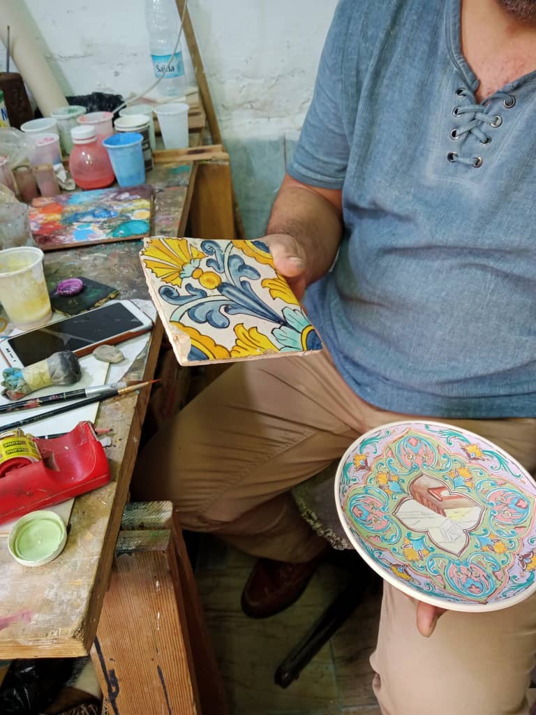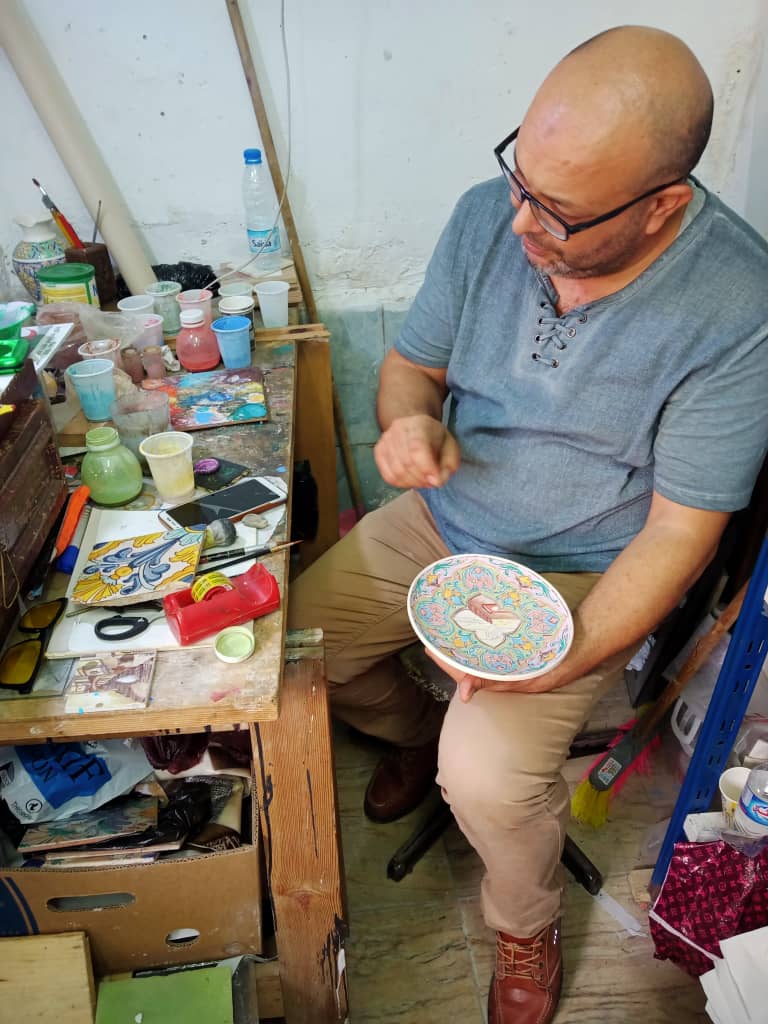 وبالقصبة العليا استضافنا طارق تريكي الذي اعتادت أنامله مداعبة هذا الفن على مدار 27 سنة، والذي روى لـ”عربي بوست” كيف انتقل من الرسم إلى هذه المهنة ليتخصص في صناعة الخزف وعالم تحضير الألوان ومزجها ليشكل زخارف بهية لمختلف أنماط الزليج.