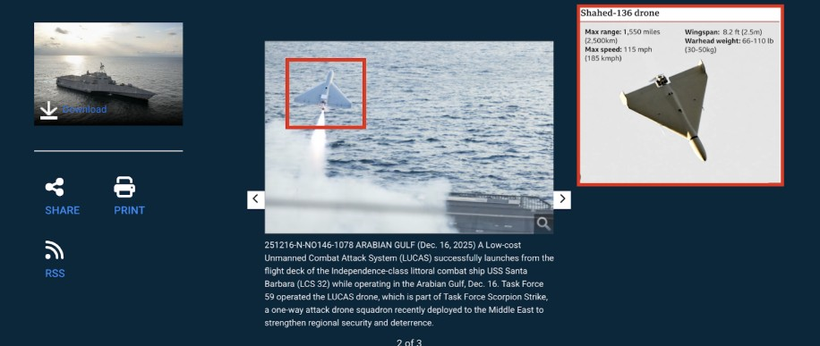 لكن التطور الأبرز جاء في 17 ديسمبر/ كانون الأول 2025، حين أعلنت البحرية الأمريكية أن Santa Barbara أطلقت طائرة مسيّرة انتحارية من طراز LUCAS في الخليج العربي، في أول عملية من نوعها تُطلق فيها البحرية الأمريكية مسيّرة هجومية من سفينة في البحر.