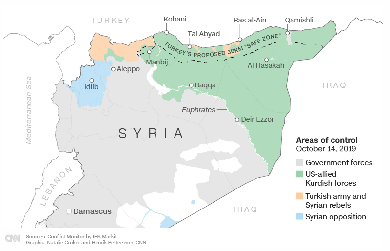 أعلنت روسيا وتركيا اتفاقاً واسع النطاق يعالج مشكلة تركية أساسية تتمثل في وجود قوات حماية الشعب الكردية قرب حدودها. لكنَّه يُقِرّ كذلك بأحد المخاوف الرئيسية للأكراد، وهو إمكانية إطلاق جماعات المعارضة المدعومة من تركيا العنان لحملة تطهيرٍ ضدهم.