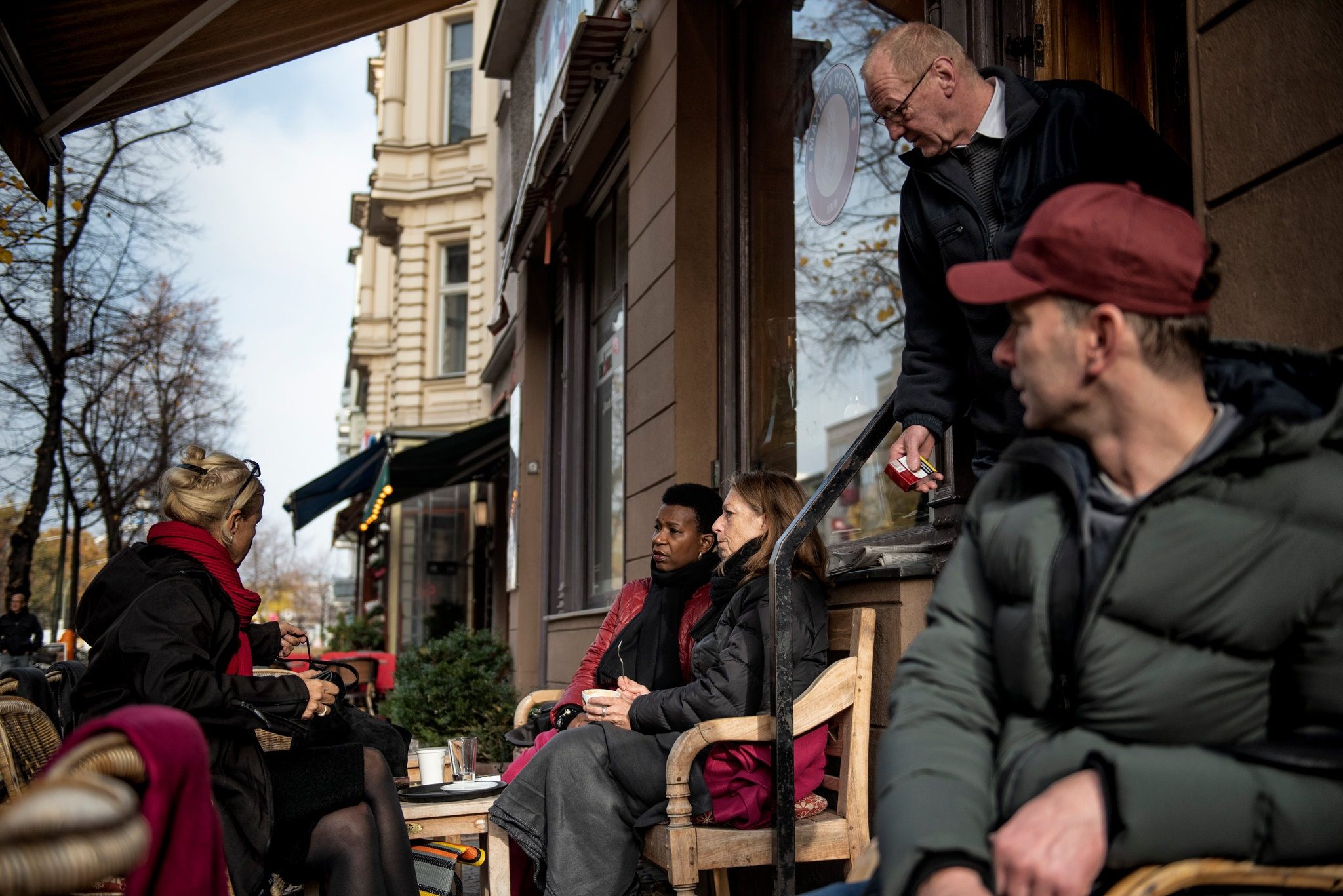 آبينا أدوماكو تتناول قهوة مع الأصدقاء في برلين/ نيويورك تايمز