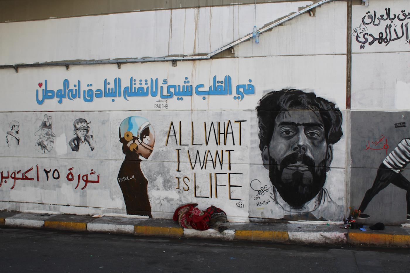 يقول علي: “نحن نتظاهر لأن العيش في العراق يشبه العيش على قنبلة: جوع وانفجارات وميليشيات وتهديدات، وكل تلك الثروات التي تُنهب وتذهب إلى جيوب أناس لم يلتحقوا حتى بمدارس، ولم يتلقوا أقل قدر من التعليم”.