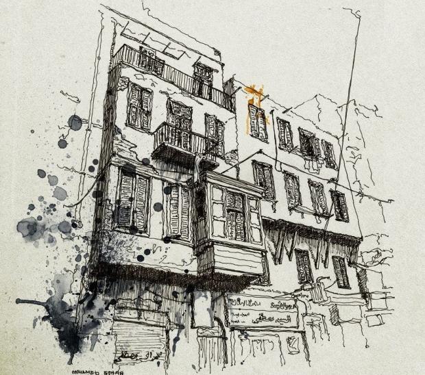 يجلس محمد جوهر على طاولة في مقهى قديم وسط مدينة الإسكندرية، يفعل ما يفعله عادةً حين يكون لديه وقت فراغ: الرسم. ولكنه لا يرسم الناس أو المناظر الطبيعية، بل المباني التاريخية في الإسكندرية.