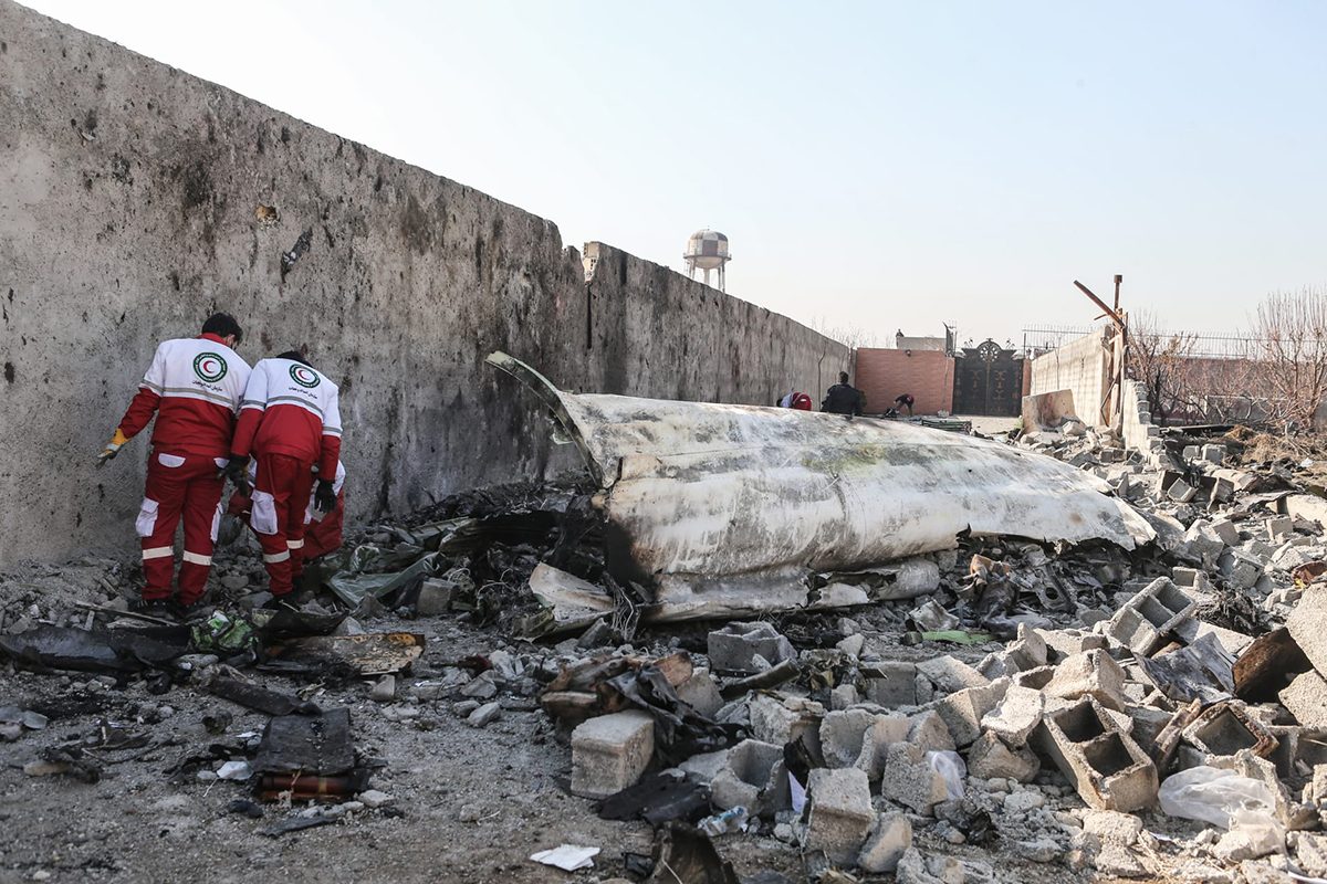 مشّط العاملون الإيرانيون بالإنقاذ، الأربعاء 8 يناير/كانون الثاني 2020، حطام طائرة الرحلة رقم 752 التابعة للخطوط الدولية الأوكرانية، والتي كانت في طريقها من إيران إلى كييف يوم الثلاثاء 7 يناير/كانون الثاني.
