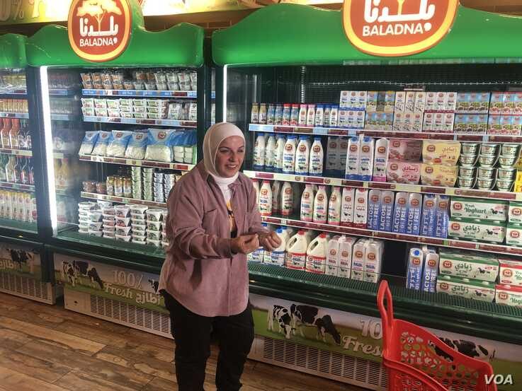 تقول ربة منزل السيدة أمان قدورة، إنها تشعر بالارتياح للعثور على منتجات محلية في متجر البقالة التابع لها في الدوحة/ VOA