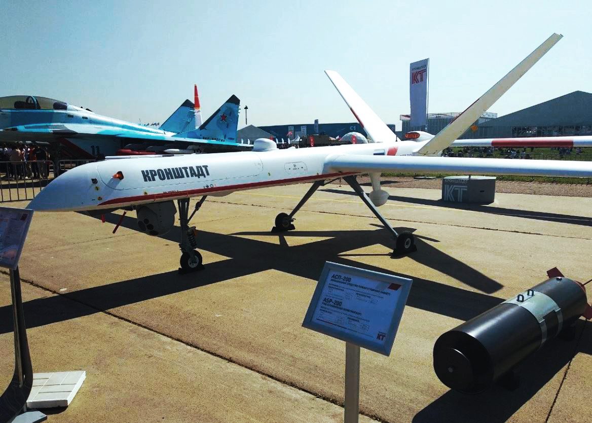 ومع ذلك، فإن الجيش الروسي حريص على تطوير سلسلة قاتلة من الطائرات بدون طيار من خلال تسليح طائرات الاستطلاع المسيرة لشن ضربات خاصة. وطور مصنعو الذخائر الروسية أسلحة دقيقة خفيفة الوزن لاستخدامها بواسطة الطائرات بدون طيار، ولاسيما القنابل الموجهة KAB-20 وKAB-50 و KAB-100 التي تزن 46 و110 و220 رطلاً على التوالي. هناك أيضاً القنبلة الانزلاقية UPAB-50 بأجنحة منبثقة ومدى يصل إلى 18.6 ميل، وصاروخ Kh-50 وزنه 110 أرطال، على غرار صاروخ هيلفاير الأمريكي.