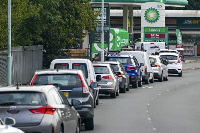 في عطلة نهاية الأسبوع، اصطف البريطانيون في محطات الوقود لساعات طويلة في موجة شراء بدافع الذعر، أدت إلى مزيد من الضغط على سلاسل التوريد التي تعاني بالفعل من ضغوط بسبب خروج بريطانيا من الاتحاد الأوروبي وأزمة جائحة كورونا.