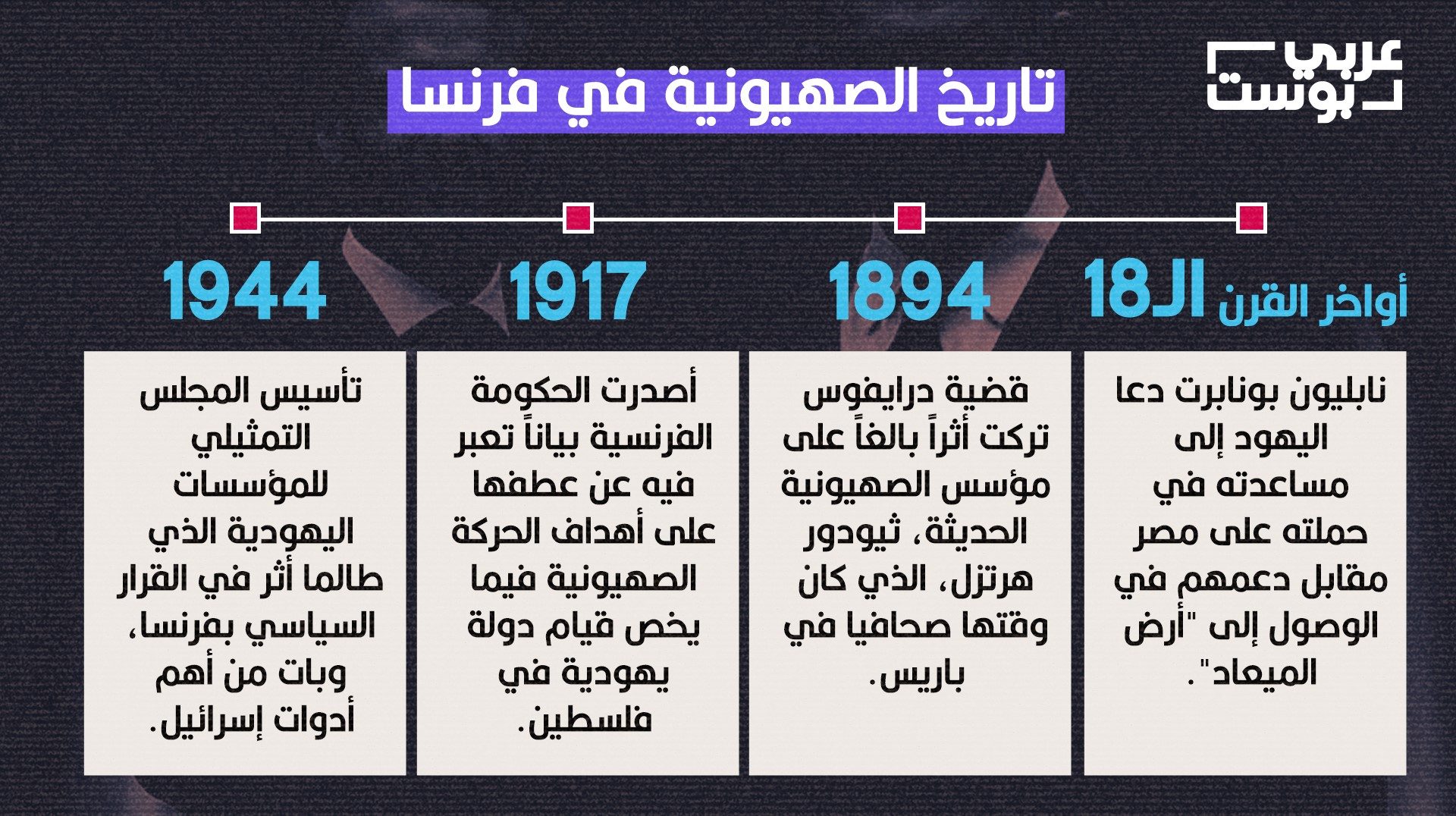 لفهم كيف توغل اللوبي الصهيوني في فرنسا لا بد من العودة قليلًا إلى الوراء وبالضبط إلى نهاية القرن 18 وبداية القرن 19 خلال فترة حكم نابليون بونابارت لفرنسا عندما احتل مصر، ودعا اليهود من آسيا وأفريقيا إلى مساعدته في حملته مقابل دعمهم في الوصول إلى “أرض الميعاد”.