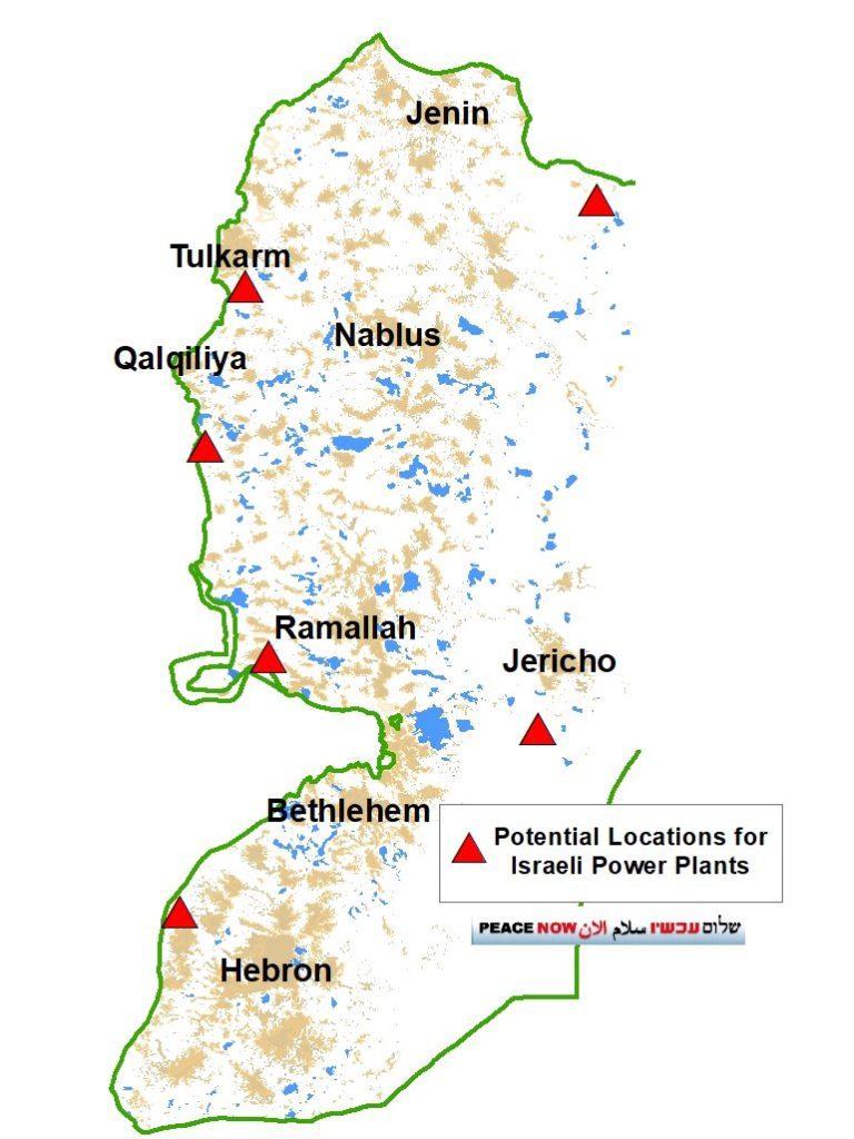 وكانت صحيفة “يسرائيل هيوم” ذكرت الشهر الماضي، أن هناك سبعة مواقع محتملة لمحطات توليد الطاقة في الضفة الغربية قيد الدراسة، والمناطق هي: جبل المقطم غربي رام الله، والمنطقة الصناعية المخطط لها “بستاني حيفتس” بالقرب من طولكرم؛ والمنطقة الصناعية المخطط لها “ناحال رابا” جنوب قلقيلية؛ ومنطقة ترقوميا غربي الخليل؛ ومنطقة النبي موسى جنوب أريحا؛ ومنطقة ميحولا في شمال غور الأردن.