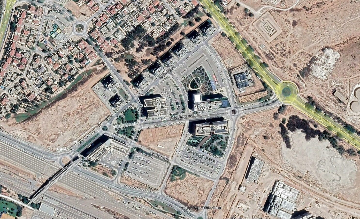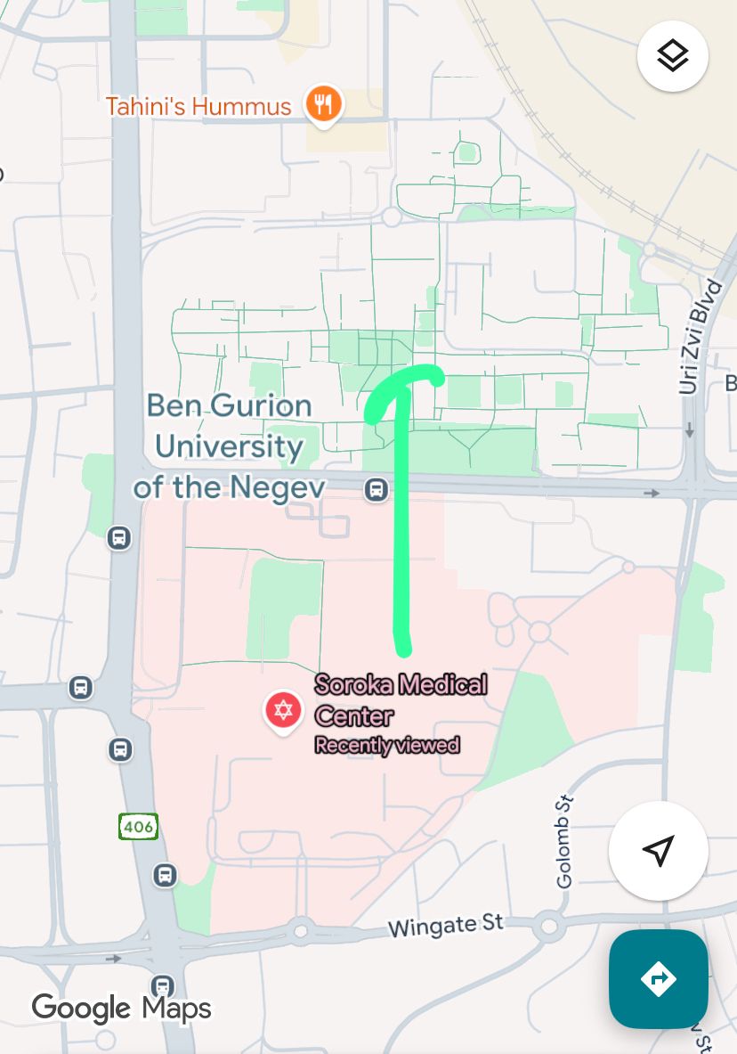 وبعد الاطلاع على الخريطة، فإن حديقة “غاف يام” التابعة لجامعة بن غوريون تبعد عن مستشفى سوروكا نحو 1.5 كيلومتر.