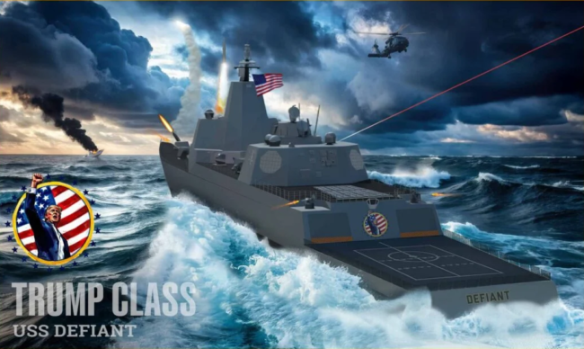 - أعلن الرئيس الأمريكي دونالد ترامب عن خطة للبحرية الأمريكية لبناء سفن حربية جديدة من “فئة ترامب“ كجزء من مشروع “الأسطول الذهبي” لتحديث البحرية الأمريكية، حيث وصف ترامب هذه البوارج الحربية بأنها ستكون سفن قتالية “متفوقة” لتحل محل ما وصفه بالأسطول الأمريكي “القديم والمتهالك”. حيث وصف السفينة الجديدة بأنها ستصبح “سفينة القيادة للأسطول البحري الأمريكي”.