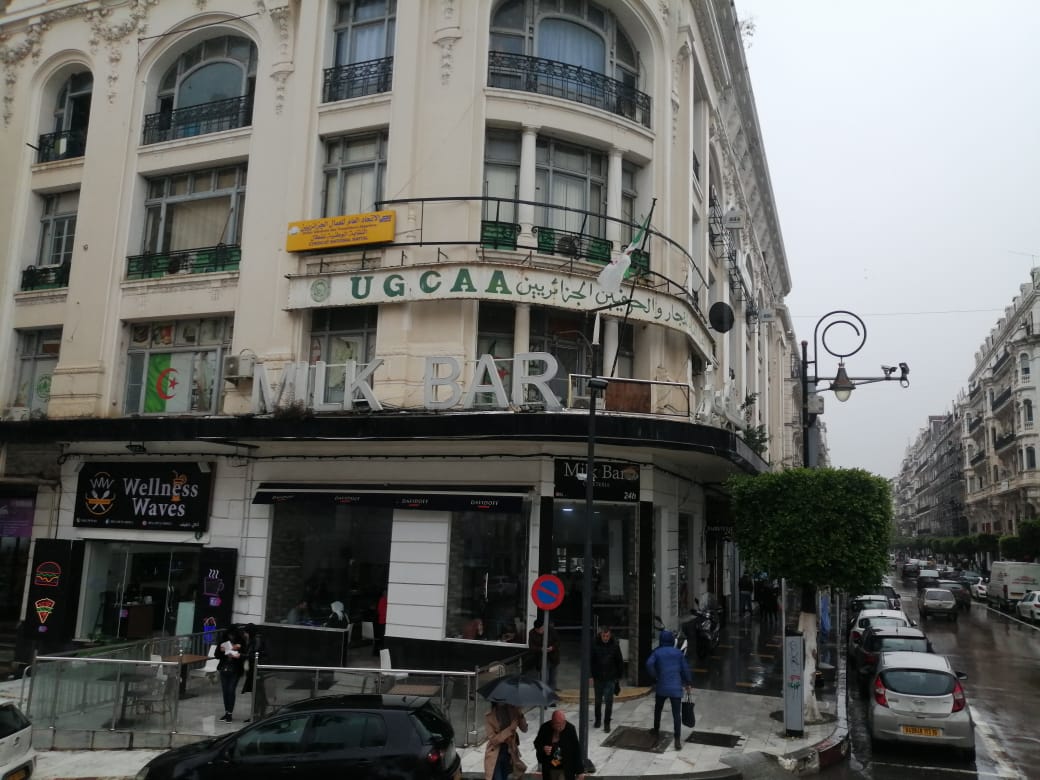 كان الجو ماطراً لما تنقلنا إلى مقهى ميلك بار الواقع بساحة الأمير عبد القادر الجزائري في شارع العربي بن مهيدي (ساحة بيجو بشارع ديزلي سابقاً)، وهو المحل المحاذي لنصب الأمير عبد القادر مؤسس الدولة الجزائرية الحديثة.
