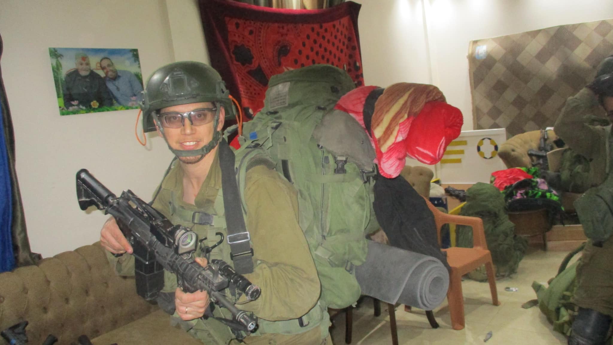 ونشر جندي آخر باسم “ديفيد أمسالم” صورة له من داخل أحد المنازل في غزة، ويظهر بجواره جندي يرتدي زياً نسائياً بطريقة ساخرة، بينما يبتسم ديفيد وهو يلتقط الصورة.