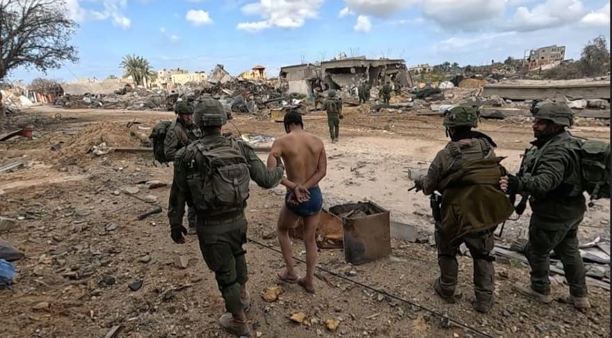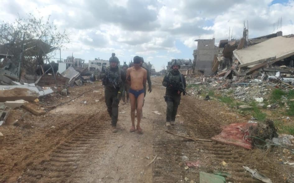 “عربي بوست” رصد صورة نشرها جندي إسرائيلي اسمه “دافيد ستين” في حسابه على “فيسبوك”، وأظهرت جنوداً إسرائيليين وهم يقتادون عدداً من المعتقلين داخل غزة لا يرتدون إلا سروالاً داخلياً، ومن بينهم أطفال وكبار في السن، وتم نقلهم إلى جهة مجهولة وهم محاطون بالجنود.