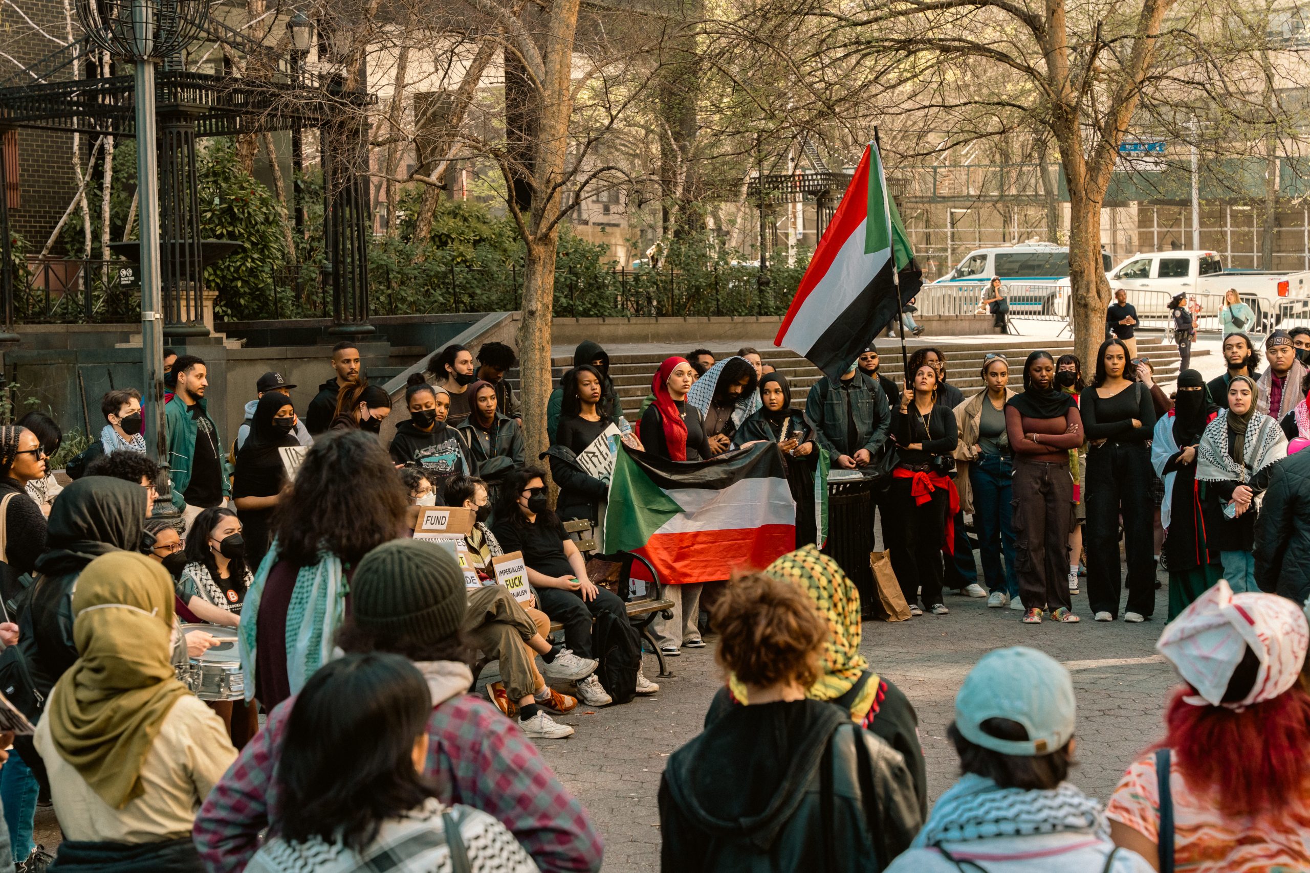 متظاهرون يدعون إلى إنهاء الحرب في السودان خارج قنصلية الإمارات العربية المتحدة في مانهاتن ينيويورك في 14 أبريل/نيسان2024-رويترز