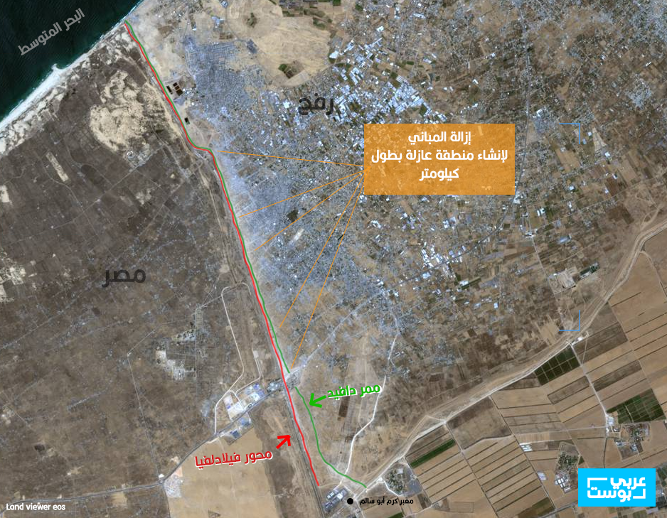 بحسب صور الأقمار الصناعية التي رصدها “عربي بوست”، فإن ممر دافيد في رفح يمتد بطول نحو 13 كيلومتراً، من معبر كرم أبو سالم، وحتى شاطئ رفح على البحر الأبيض المتوسط، ليعزل جنوب قطاع غزة بالكامل عن مصر.