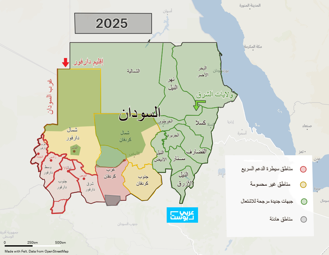 خريطة النفوذ في السودان 2025/ عربي بوست