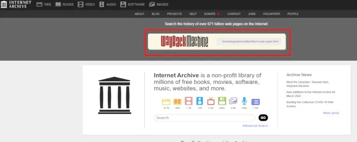 - توجه إلى موقع أرشيف الإنترنت، والصق الرابط في شريط بحث أداة “واي باك مشين”، لتتأكد مما إذا كانت الصفحة مؤرشفة.