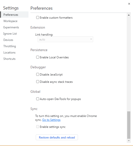 - انزل إلى آخر الصفحة تقريباً، على سطر Debugger، واضغط على المربع قرب عبارة Disable JavaScript تحته.