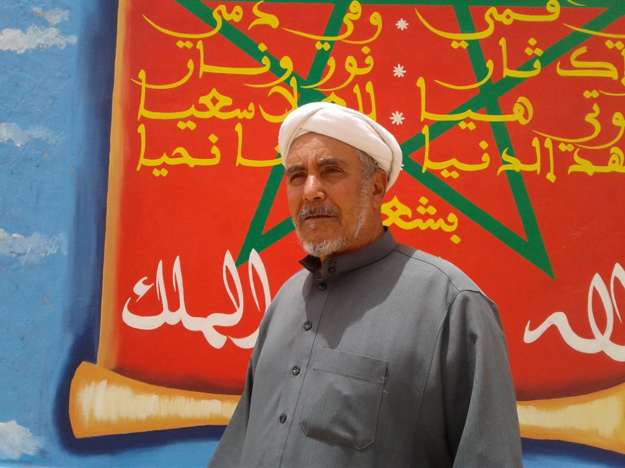 يقف مُتورِّد الخدَّين إلى جانب مسؤول وزارة التعليم بإقليم تِنغير بالجنوب الشرقي المغربي، متسلِّماً شهادة البكالوريا (الثانوية العامة) الخاصة به، ويهُزُّ رأسه تفاعلاً مع كلمات ثناء تحتفي بـ”شيخ المتمدرسين” البالغ من العمر 69 سنة.