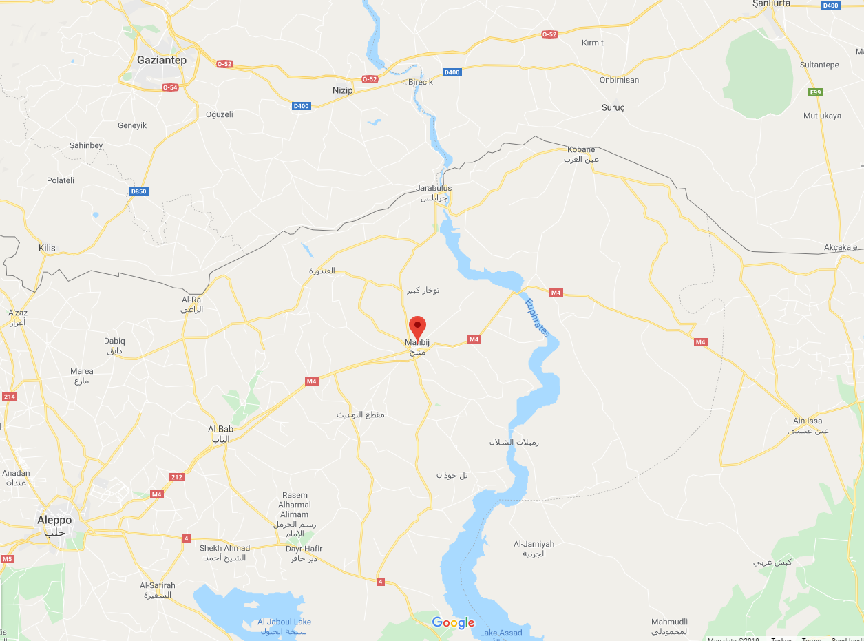 مَنْبِج هي مدينة في شمال شرق حلب بمسافة 80 كم وغرب نهر الفرات بـ 30 كم، وهي المنطقة الوحيدة المتبقية غرب نهر الفرات التي تنوي تركيا وقوّات الجيش الوطني السوري الموالي لأنقرة، تحريرها من الوحدات الانفصالية الكردية المدعومة أمريكياً.