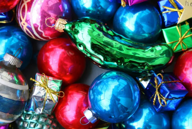 غالباً ما يتم تعليق خيارة خضراء بلاستيكية على شجرة عيد الميلاد وإخفاؤها بين التورت الملونة وعلاقة حيوان الآيل.