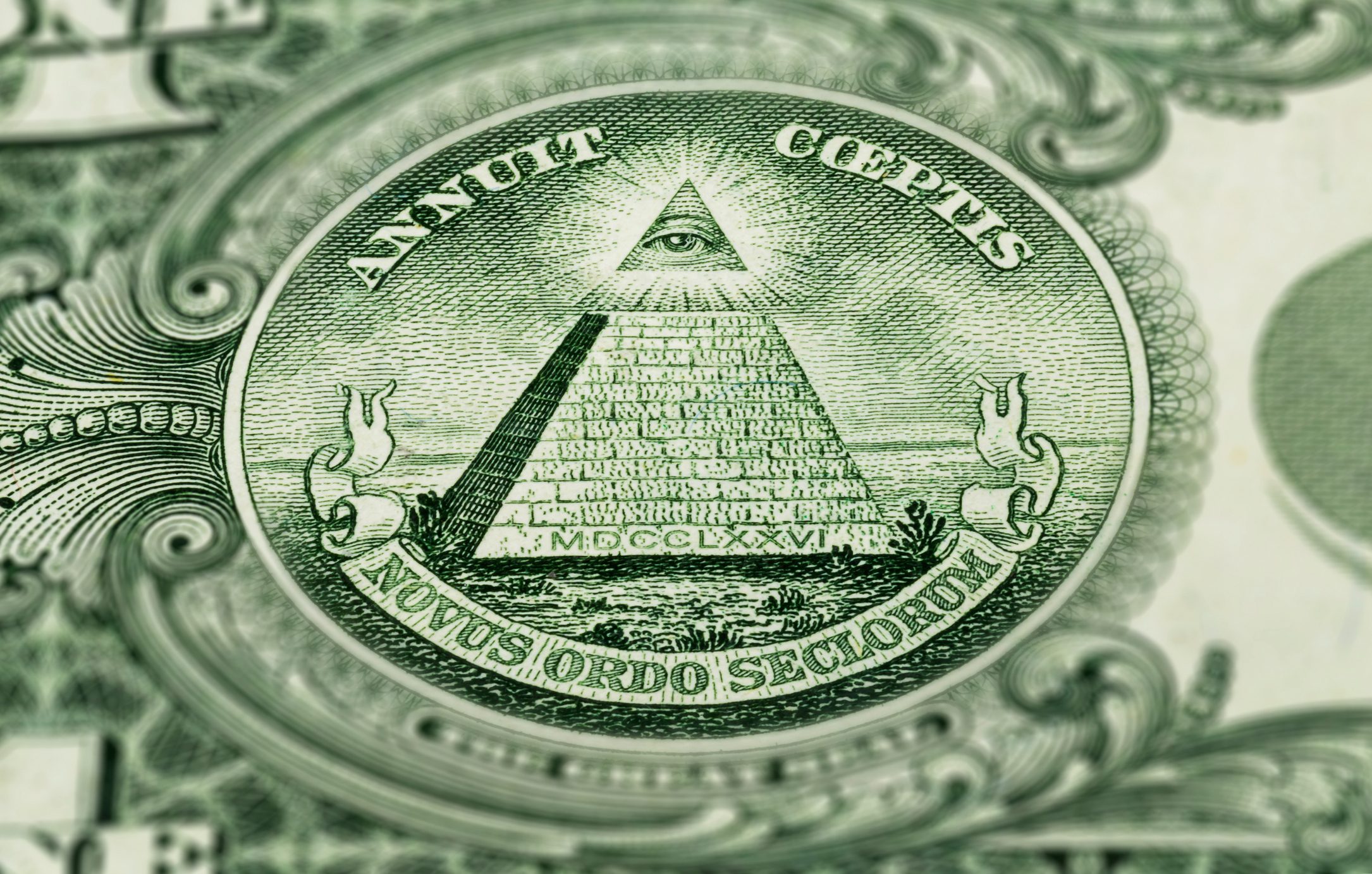 لكن منظمات مثل مجلس الاحتياطي الفيدرالي في فيلادلفيا تزعم أنّ الماسونيين هنري والاس وفرانكلين روزفلت اختاروا رمز العين عمداً عندما أعادوا تصميم ورقة الدولار عام 1934.