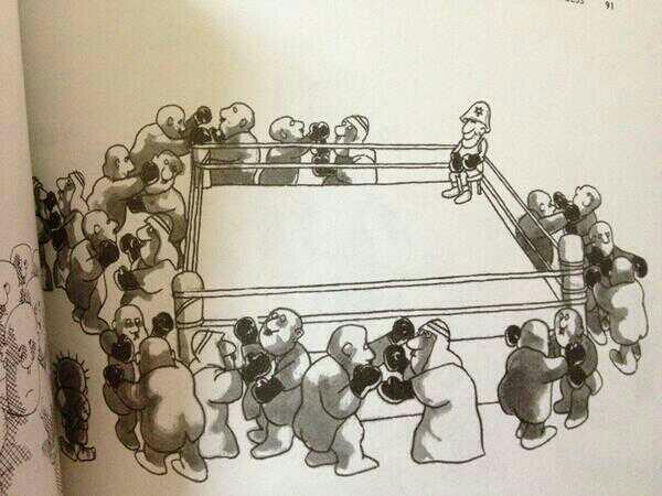 “لم تكد أقدام ناجي العلي تطأ مخيم عين الحلوة في لبنان حتى بدأ معاداته للاحتلال الإسرائيلي، الذي كان سبباً في تهجيره مع عائلته من قريته، فاعتقله الإسرائيليون لأول مرة وهو لا يزال صغيراً، فقضى أغرب أوقاته في المعتقل وهو يرسم على جدران الزنزانة، كما اعتقله الجيش اللبناني أكثر من مرة، وكان هناك أيضاً يرسم على جدران السجن”.