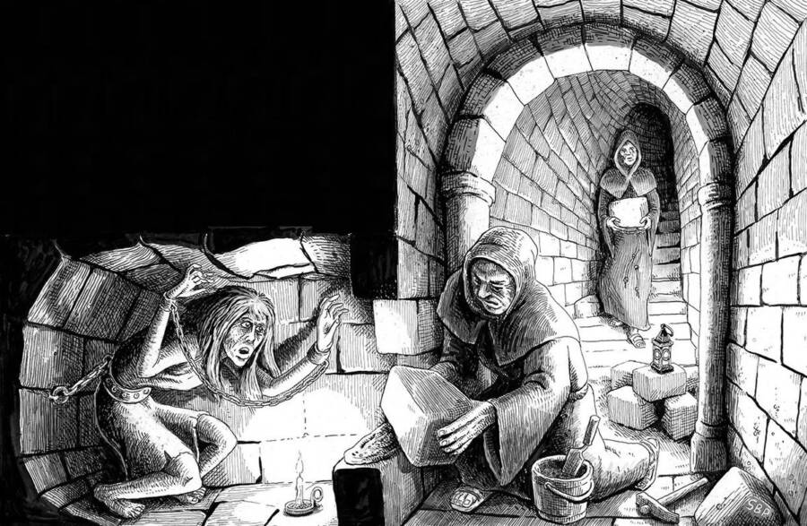 غالباً ما كانت الكنيسة الرومانية الكاثوليكية تفرض هذه العقوبة على الراهبات أو الرهبان الذين كسروا نذراً بالعفة أو عبَّروا عن أفكار هرطقية. إذ يتم وضعهم في توابيت ضيقة ذات فتحات صغيرة للطعام والماء فقط. بهذه الطريقة لن يكون لديهم اتصال بالعالم الخارجي، وقد يعيشون أياماً أو شهوراً في عذاب قاتل قبل لفظ أنفاسهم الأخيرة.
