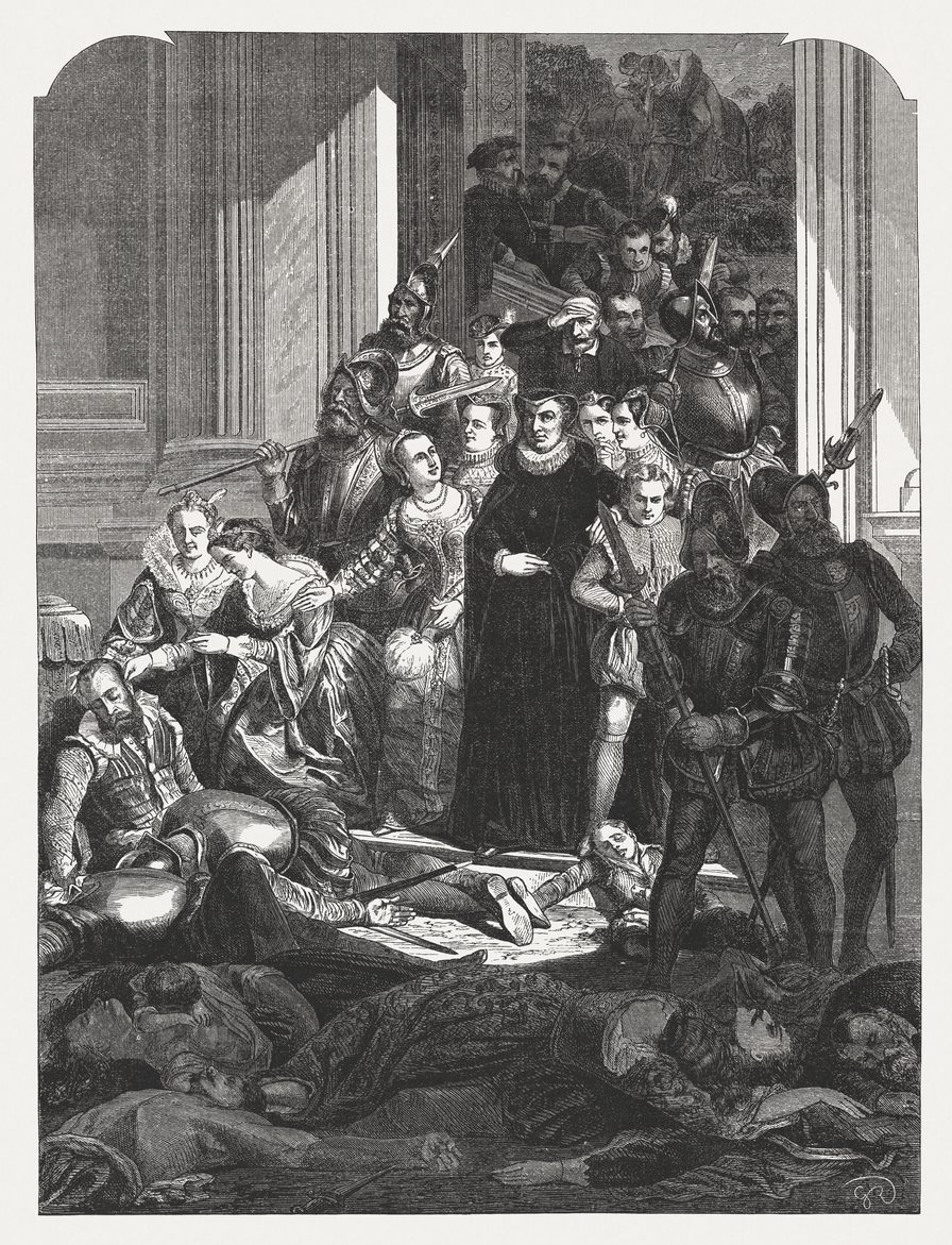 حينها وقعت إحدى أكبر المذابح في التاريخ: مذبحة يوم القديس بارثولوميو التي شهدت مقتل ما يصل إلى 70 ألفاً من الهوغونوت في جميع أنحاء فرنسا، والتي يُعتقد أنها من تدبير كاثرين دي ميديشي، الملكة الوصية على عرش ابنها من 1560 إلى 1574.
