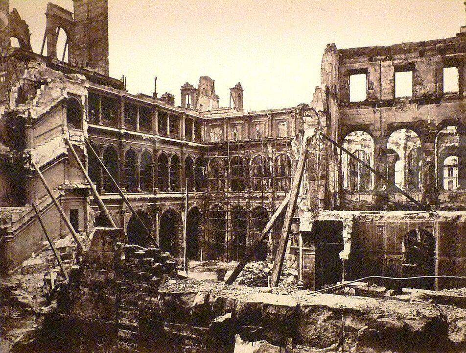 هدم بعض أهل الكومونة النصب التذكارية في الداخل الباريسي، خصوصاً تلك التي تُمجّد الجيش أو الملكية الفرنسية، فيما كانت القوات الفرنسية تستعد لمهاجمة العاصمة.