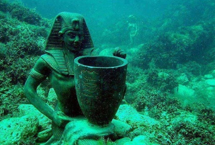 وقد أظهر استكشاف مدينة هرقليون لعلماء الآثار عندما بدأوا الغوص في الموقع في التسعينيات، أطلال معبد قديم، كما وجدوا أيضاً تماثيل ضخمة تمثل الآلهة والملوك البطالمة، بالإضافة إلى زوجاتهم، وآنيتهم، وجواهرهم، وحتى سفن خشبية محطمة.