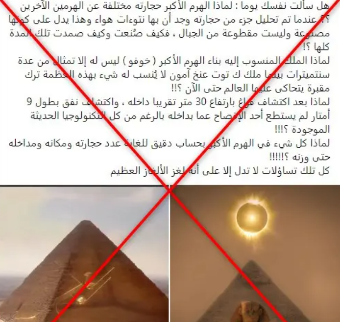 وفي حين لا يزال لغز بناء الأهرامات المصرية القديمة، وخاصة أهرامات الجيزة، من أكثر المواضيع إثارة وإعجاباً لدى الكثيرين حول العالم، تظل الطريقة التي بنيت بها هذه الهياكل الضخمة محاطة بالغموض والتكهنات. هذا الغموض الذي كثيراً ما يستغلّه مستخدمو مواقع التواصل لبثّ معلومات مضللة بهدف جذب التفاعلات.