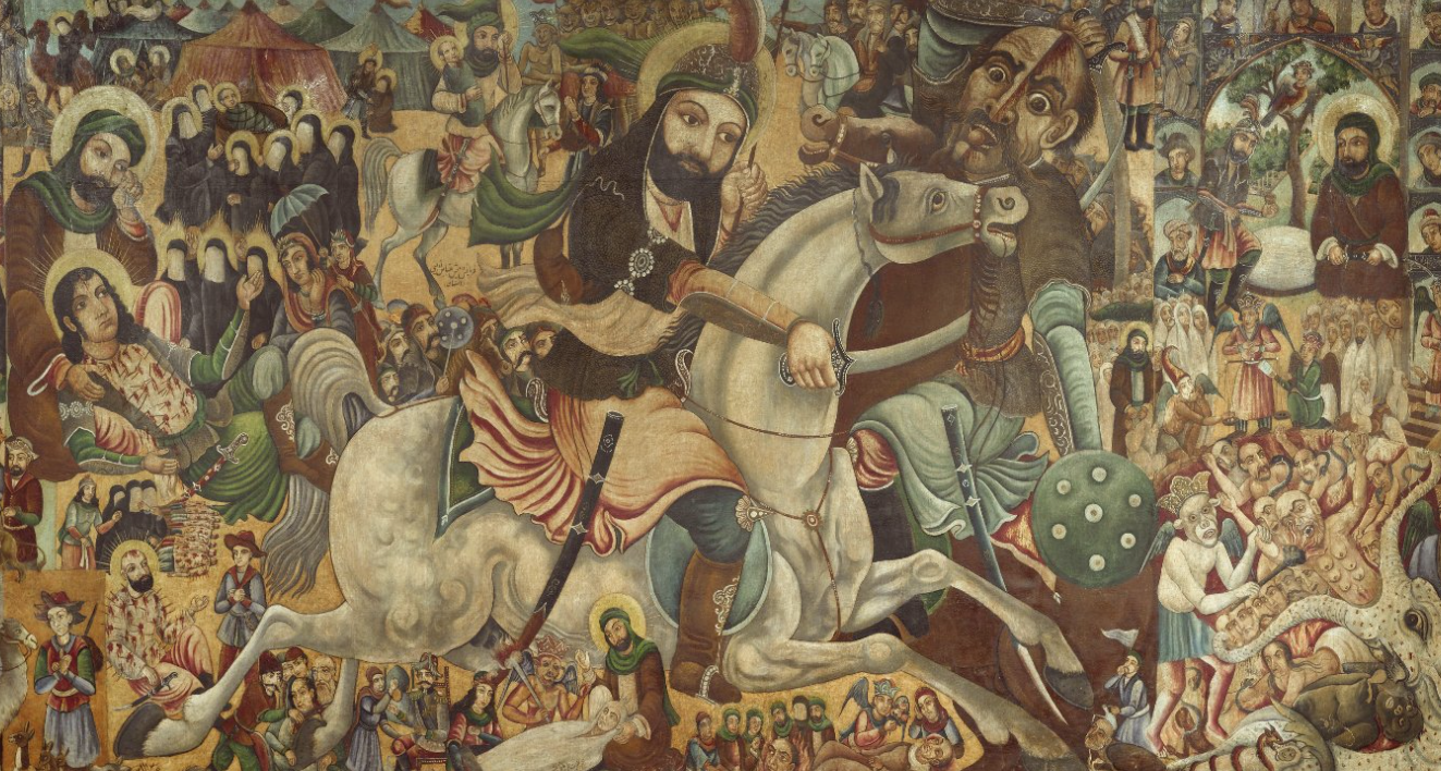 لذلك فإنّ العلم الأحمر الحامل لعبارة “يالثارات الحسين” يرمز به الإيرانيون إلى الدماء التي سُفكت ظلماً وهو يعتبر دعوة للانتقام استمراراً لخطّ الحسين عليه السلام ومنهجه ومسيرته ونهضته في القيام بوجه الظالمين والكافرين.
