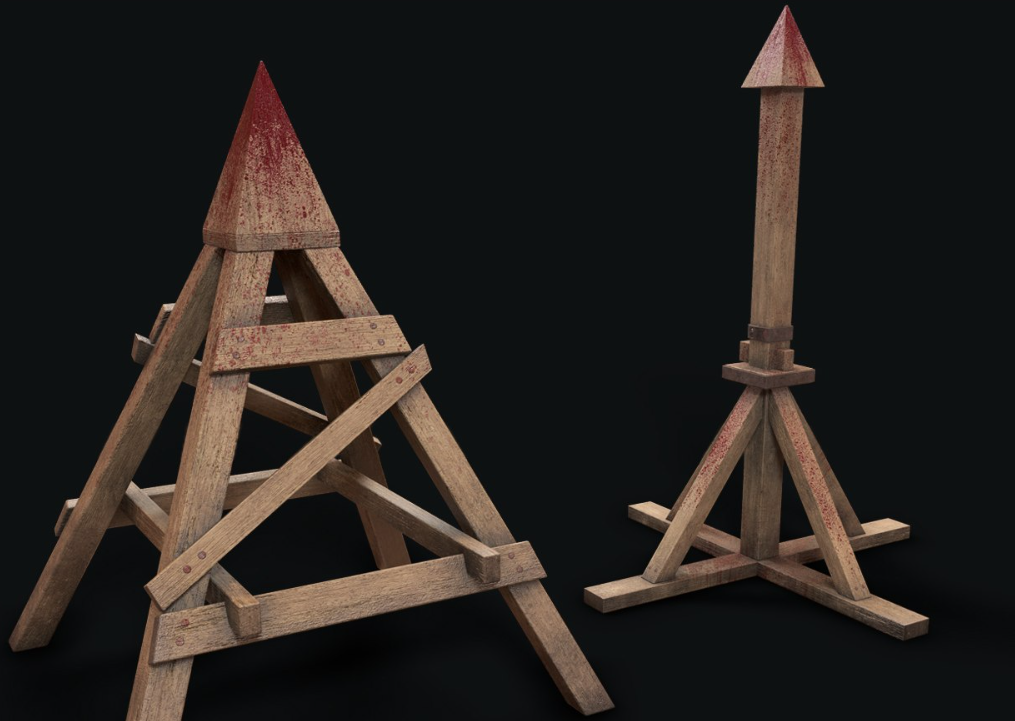 كانت الأداة عبارة عن هرم خشبي منحوت في القمة ويقف على ثلاث أرجل خشبية، كان يشبه نوعاً ما مقعداً خشبياً دون مسند، لكنه ليس من النوع الذي لا تود أن تجلس عليه. كانت آلة التعذيب هذه توضع في زاوية غرفة التعذيب، وفوقها يُعلق شخص عارٍ، وتُربط يداه وقدماه بحبال ملتصقة بالتروس.