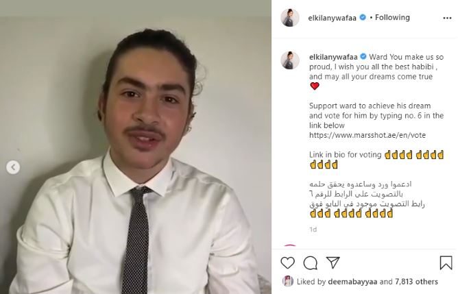 مقدّمة البرامج المصرية كانت أعادت نشر الإعلان الخاص بالمسابقة العالمية، إلى جانب فيديو لورد، وكتبت معلّقة: “ورد لقد جعلتنا فخورين بك، أتمنى لك الأفضل حبيبي، وأتمنى أن تحقق جميع أحلامك.. ادعموا ورد من أجل تحقيق حلمه، وصوّتوا له”.