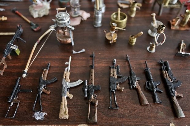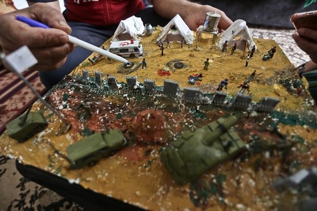 صحيحٌ أن هذه العادة نمتْ لديه منذ العام ١٩٩١، أثناء الانتفاضة الفلسطينية الأولى، إلا أن أبو طاقية استطاع في الآونة الأخيرة فقط – في أعقاب مظاهرات مسيرة العودة الكبرى ومع وفرة الذخيرة – أن يحوّل هذه المخلّفات إلى تماثيل ومنشآت مصغّرة، وهو نوعٌ من الفن يُسمَّى “فن المصغّرات”.