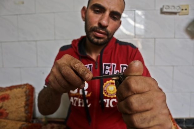 يمكنك أن تلمح مجدي أبو طاقية في أيِّ يومٍ عادي، وهو يجوب منطقة الحدود بين غزة وإسرائيل، جامعاً بقايا الطلقات من الأسلحة الإسرائيلية. فهذه الشظايا، وفوارغ قنابل الغاز المسيل للدموع، وحتى الطلقات المُستخرَجة من أجساد الفلسطينيين المصابين، تُعدُّ جزءاً من تذكارات أبو طاقية.