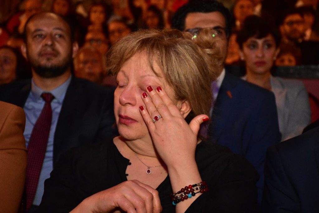سمية الألفي تبكي خلال تكريم طليقها فاروق الفيشاوي