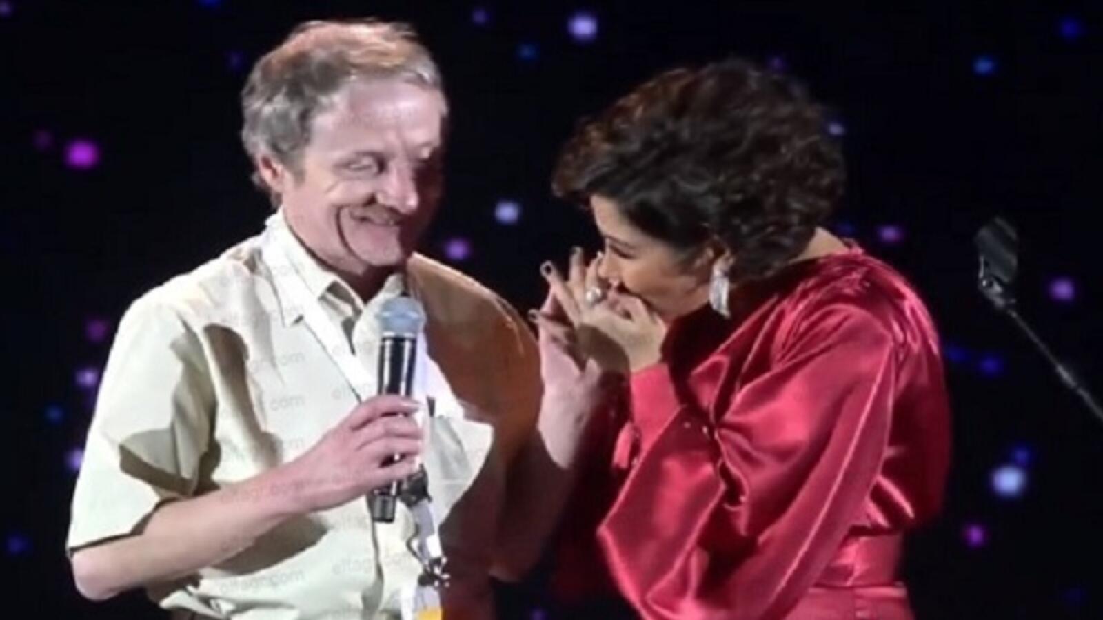 شيرين تقبّل يد معجب سويسري أمام جمهورها السعودي بعد حديثه بالعربية (فيديو)