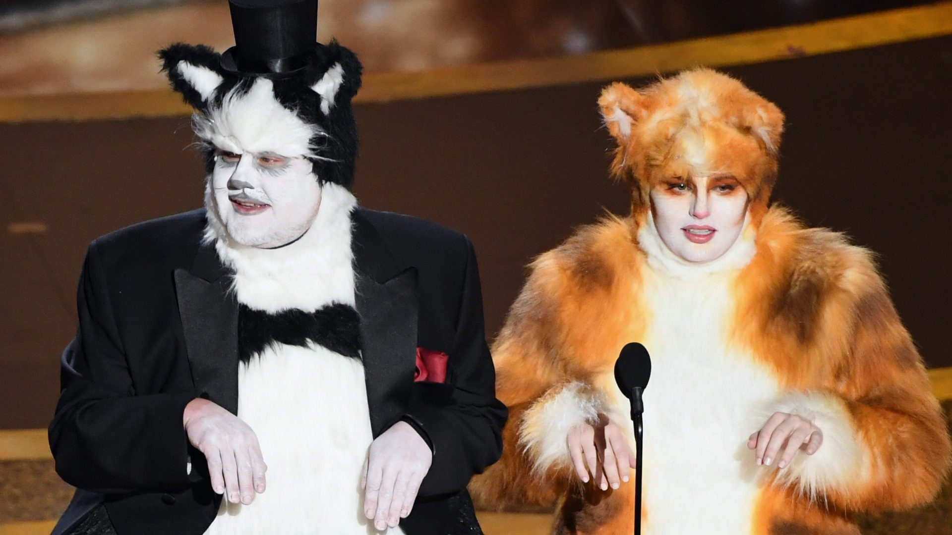 إذ ظهرا على المسرح مرتديين زيّ قطط أثناء تقديمهما جائزة أفضل مؤثرات بصرية والتي كانت من نصيب فيلم 1917.
