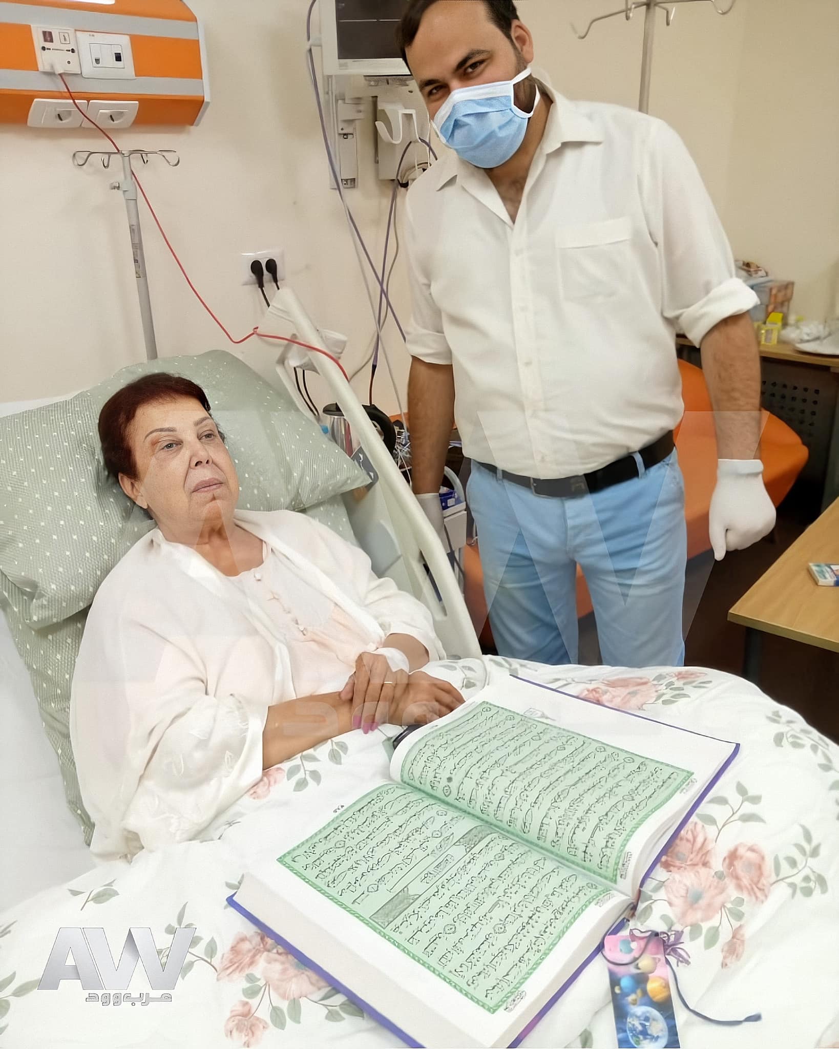 حيث ظهرت رجاء الجداوي في إحدى غرف مستشفى العزل في مدينة الإسماعيلية بالقرب من قناة السويس، ومعها مصحف كبير وضعته على حجرها.
