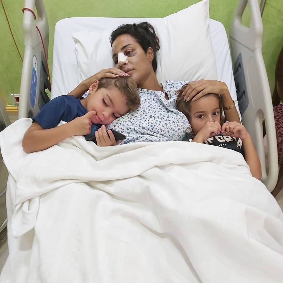 نشرت الفنانة اللبنانية نادين نسيب نجيم، الجمعة 14 أغسطس/آب 2020، عبر حسابها الخاص في إنستغرام أول صورة تكشف عن وجهها من داخل المستشفى وتجمعها بطفليها هافين وجيوفاني.