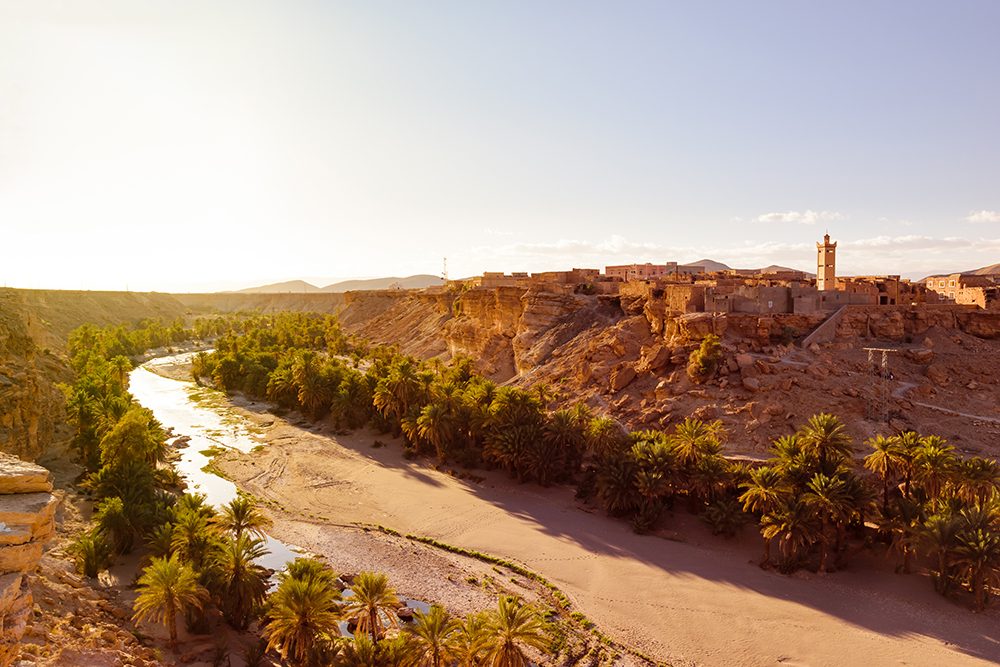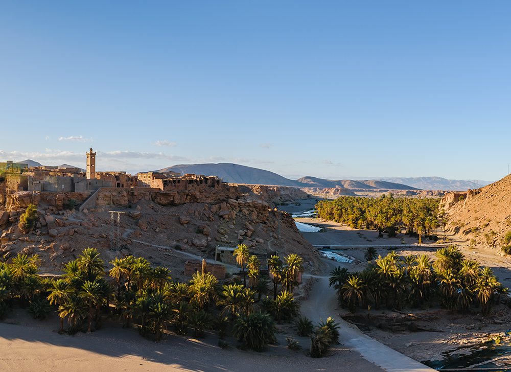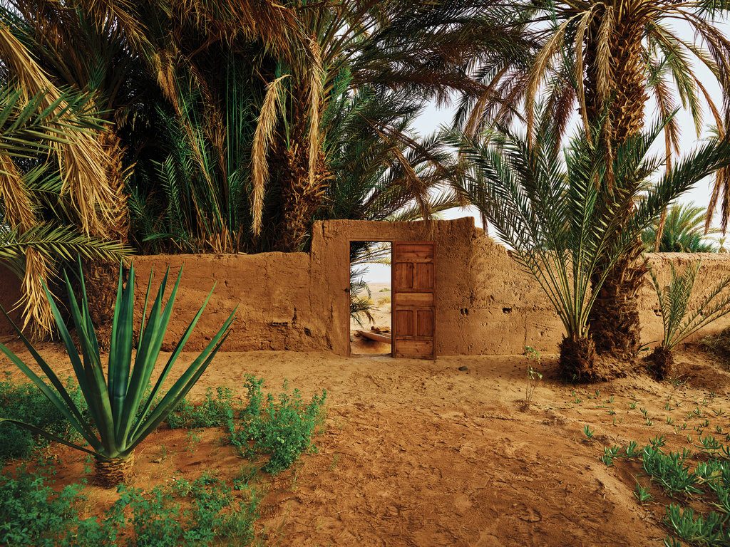قال لي سيمون، وهو يشير براحة يده المبسوطة: “إذا كان ثمة واحة حية في هذا العالم، فهي ما تراه أمامك الآن”. لفت نظري أنَّ سيمون لا يزال يرتدي خاتم الزواج في إصبعه، حتى بعد مرور سنواتٍ على وفاة زوجته، وهو أمرٌ أثار الشجن في نفسي. يصف سيمون المغرب نفسها بأنَّها محور تلتقي فيه أوروبا وإفريقيا والعالم العربي. كانت أقرب بلدة منا في وادي درعة هي بلدة “تيسينت”، وتعني “الملح” في لغة الأمازيغ، وفيها أنشأ سيمون معسكراً من الخيم البدوية. كانت هذه البلدة مركز الثقِل الرئيسي في التجارة التي ربطت أجزاء الصحراء الكبرى ببعضها البعض. ازداد العنصر الأمازيغي قوةً ونحن نوغل داخل وادي درعة، إلى أن وصلنا إلى منطقة أقرب من الناحية العرقية إلى إفريقيا جنوب الصحراء الكبرى منها إلى العالم العربي. قال لي سيمون إنَّ العرب هم من أدخل أشجار النخيل إلى المنطقة، ليضعوا بذلك حجر الأساس لاقتصاد الواحة ويضمنوا انتشار الإسلام.