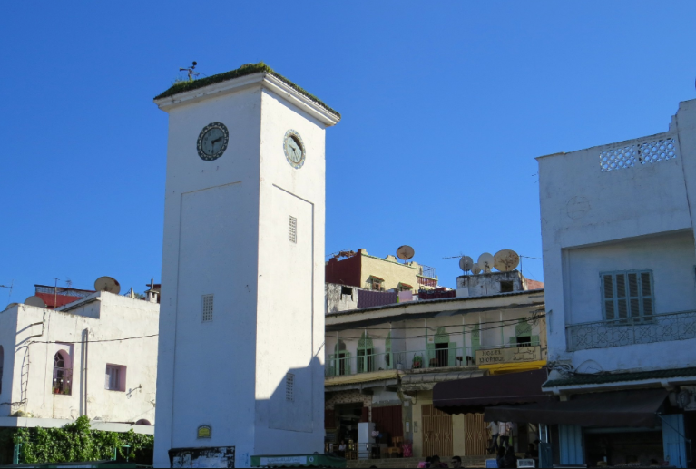 لم توضع الساعة في المدينة إلا في سنة 1920 في فترة الحماية الفرنسية، استمرت الساعة في الاشتغال إلى حدود أواخر القرن العشرين بسبب عطل ميكانيكي.