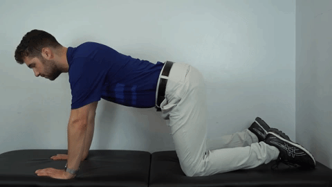 - تحرّك للخلف ببطء وانتظام مع إبقاء أردافك بالقرب من كعبيك قدر الإمكان.